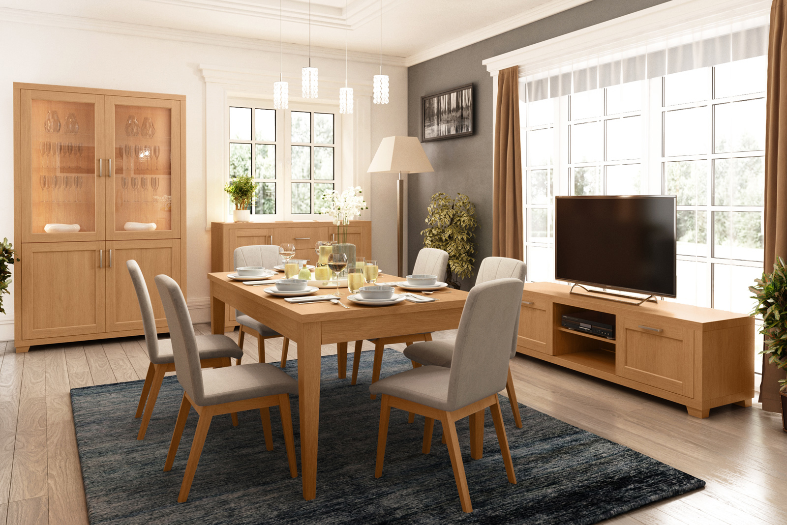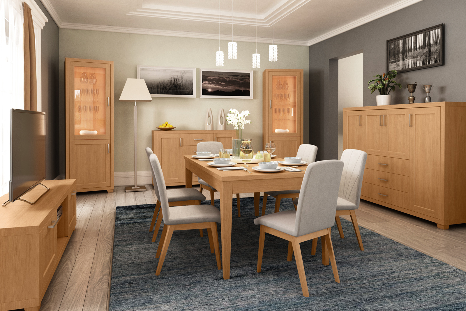 Eleganckie meble inspirowane klasycznym wzornictwem, które wprowadzą do Państwa jadalni atmosferę wyrafinowania. W skład wchodzą stoły, krzesła, witryny oraz komody.
